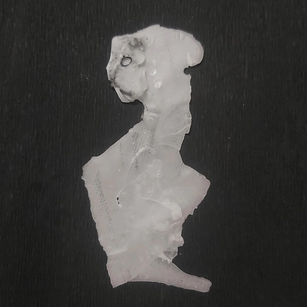 Dessin au fusain pris dans la cire, 2025, environ 12cm de hauteur