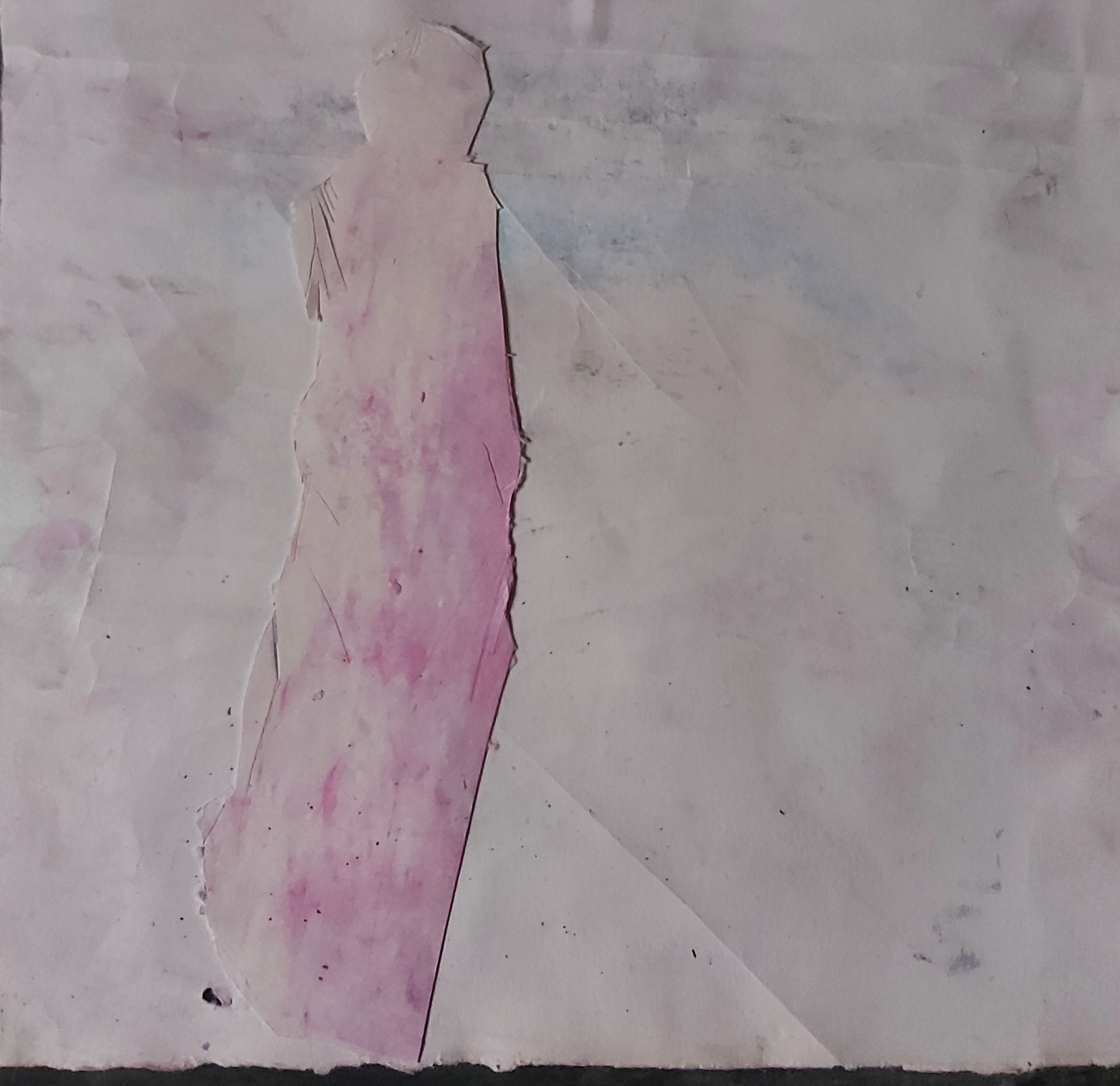 La Dame du lac, 2025. Crayons de cire, white spirit, pointe sèche sur papier, 23,5x25cm